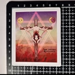 This Anime Style Illustrated Picture Of A Dismembered Naked Woman Nailed To A Crucifix sticker measures 8.5cm X 7cm which is approximately 3" & 1/4 X 2" & 3/4 inches.