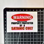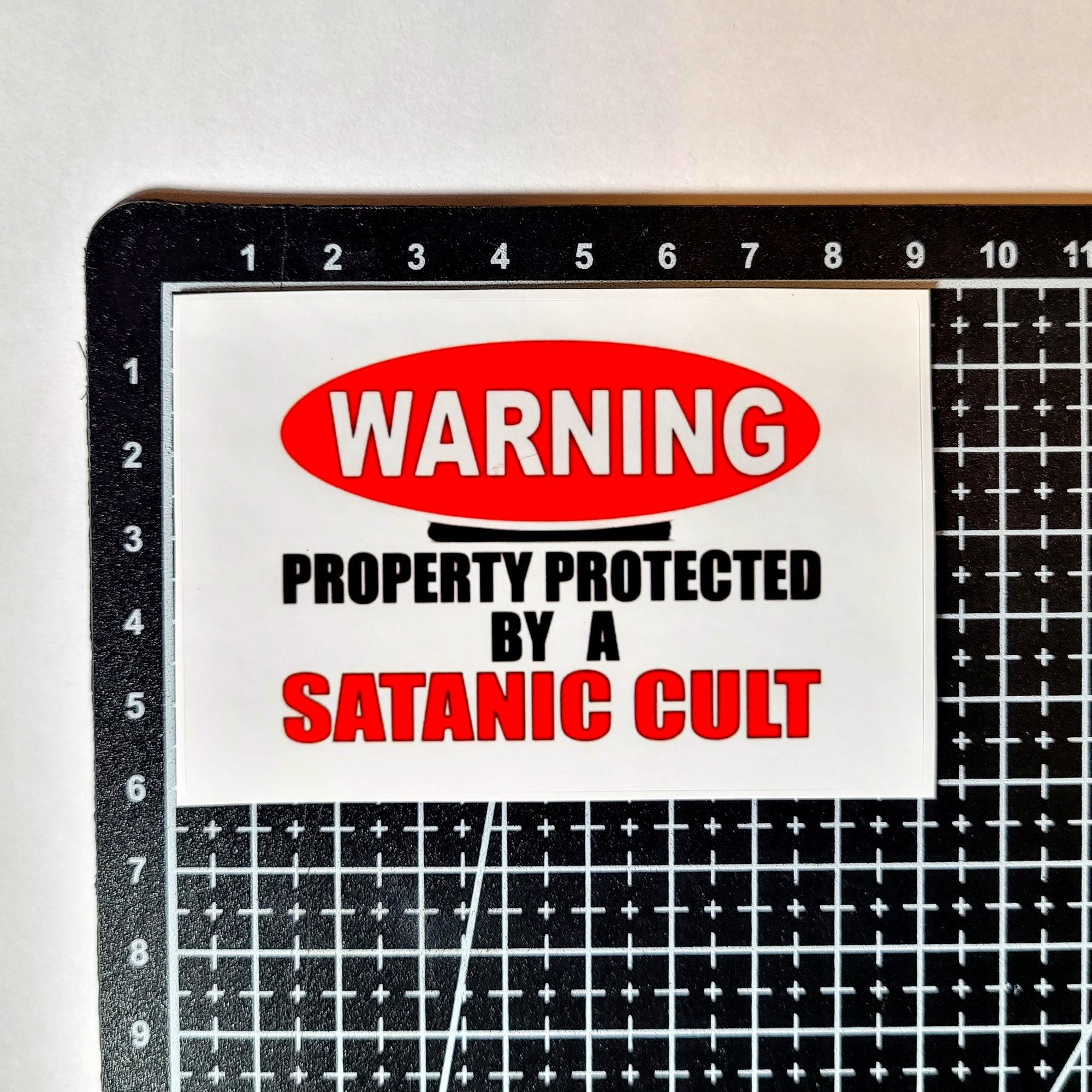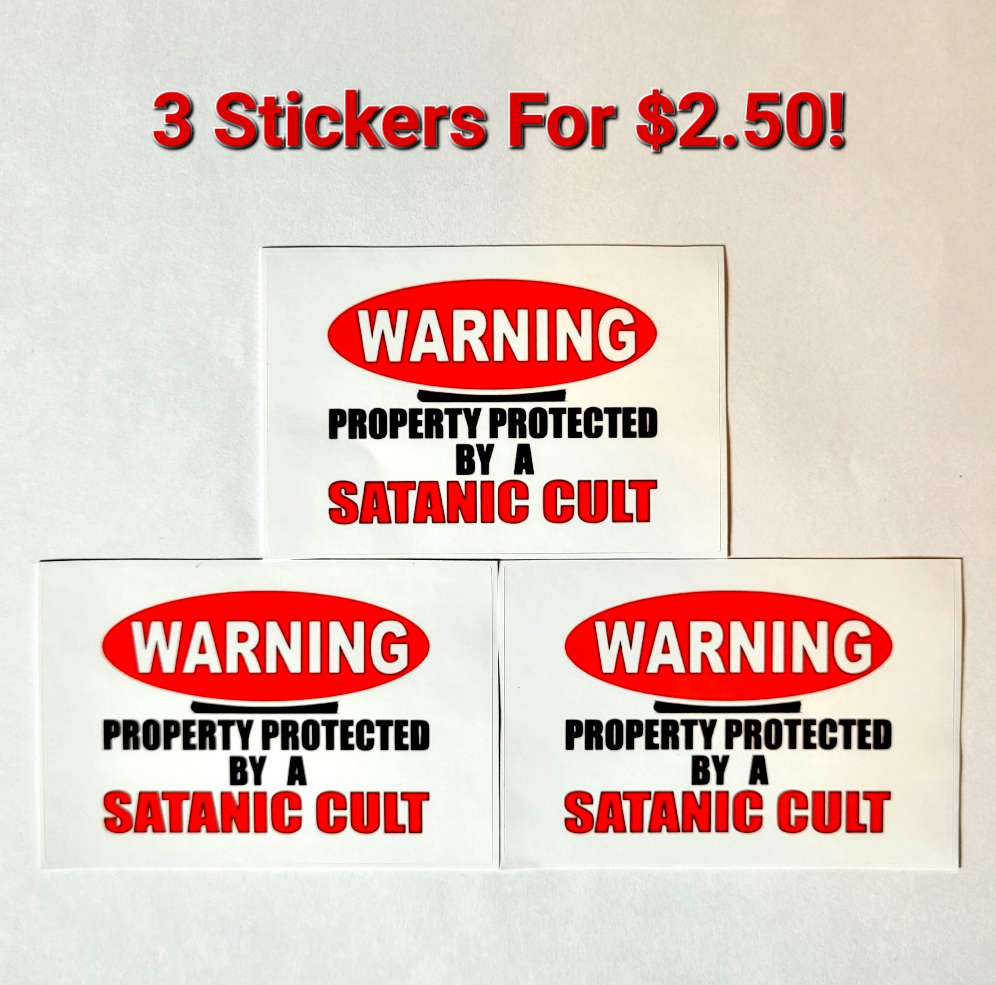 Duruable Vinyl Gloss Finish UN-Laminated WARNING Property Protected By Satanic Cult Stickers 3/$2.50