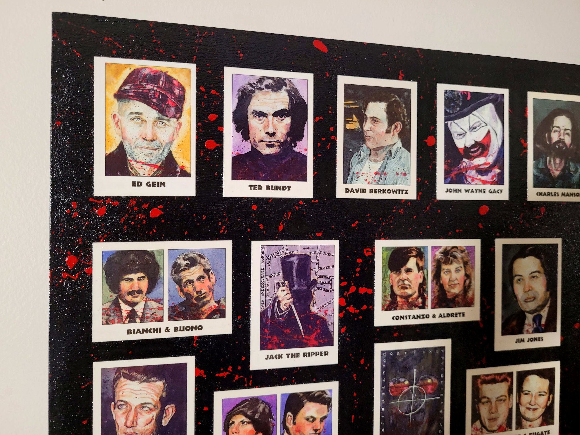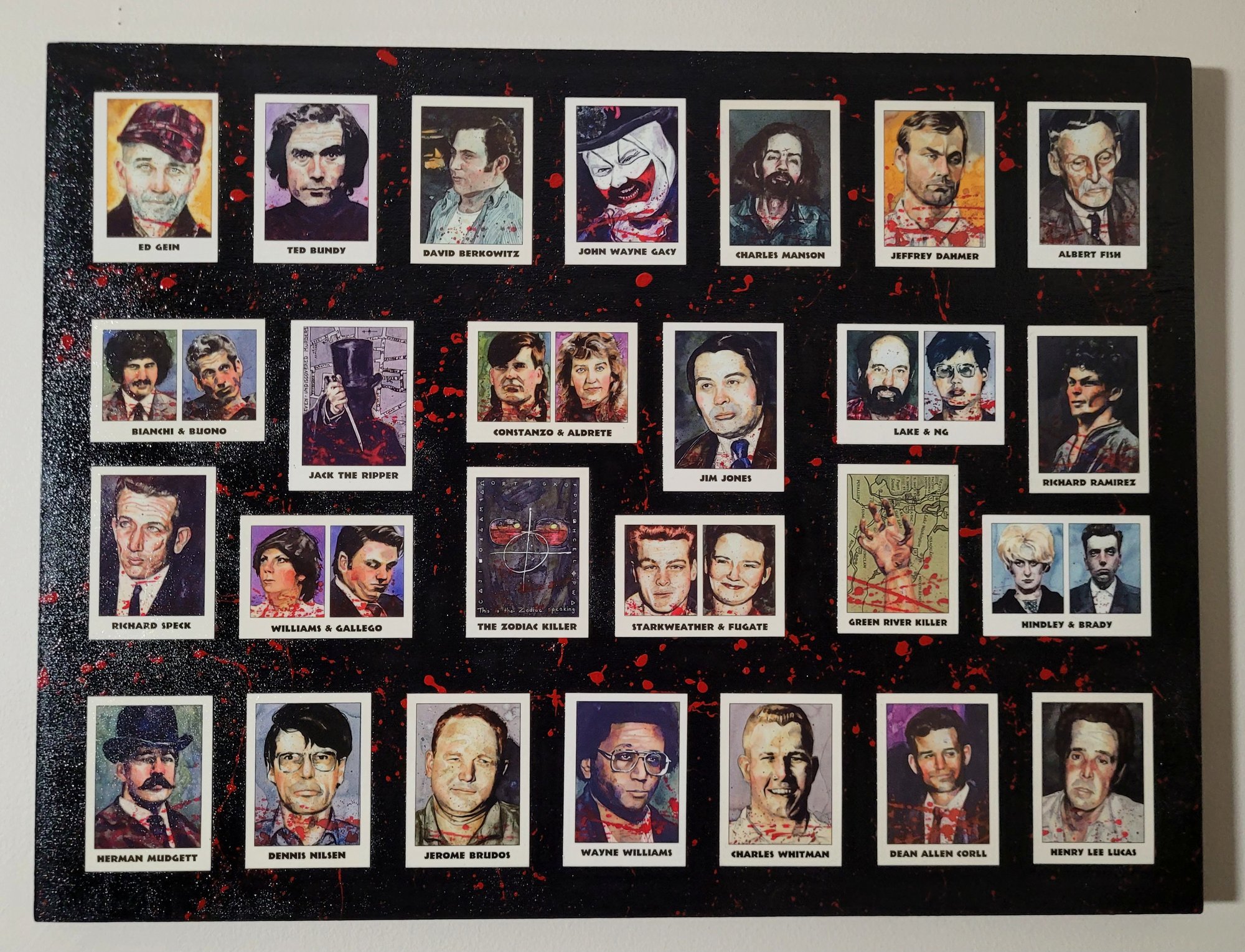 Homemade Serial Killer Poster Board 24" x 18" Birchwood Art Board & Serial Killer Trading Cards