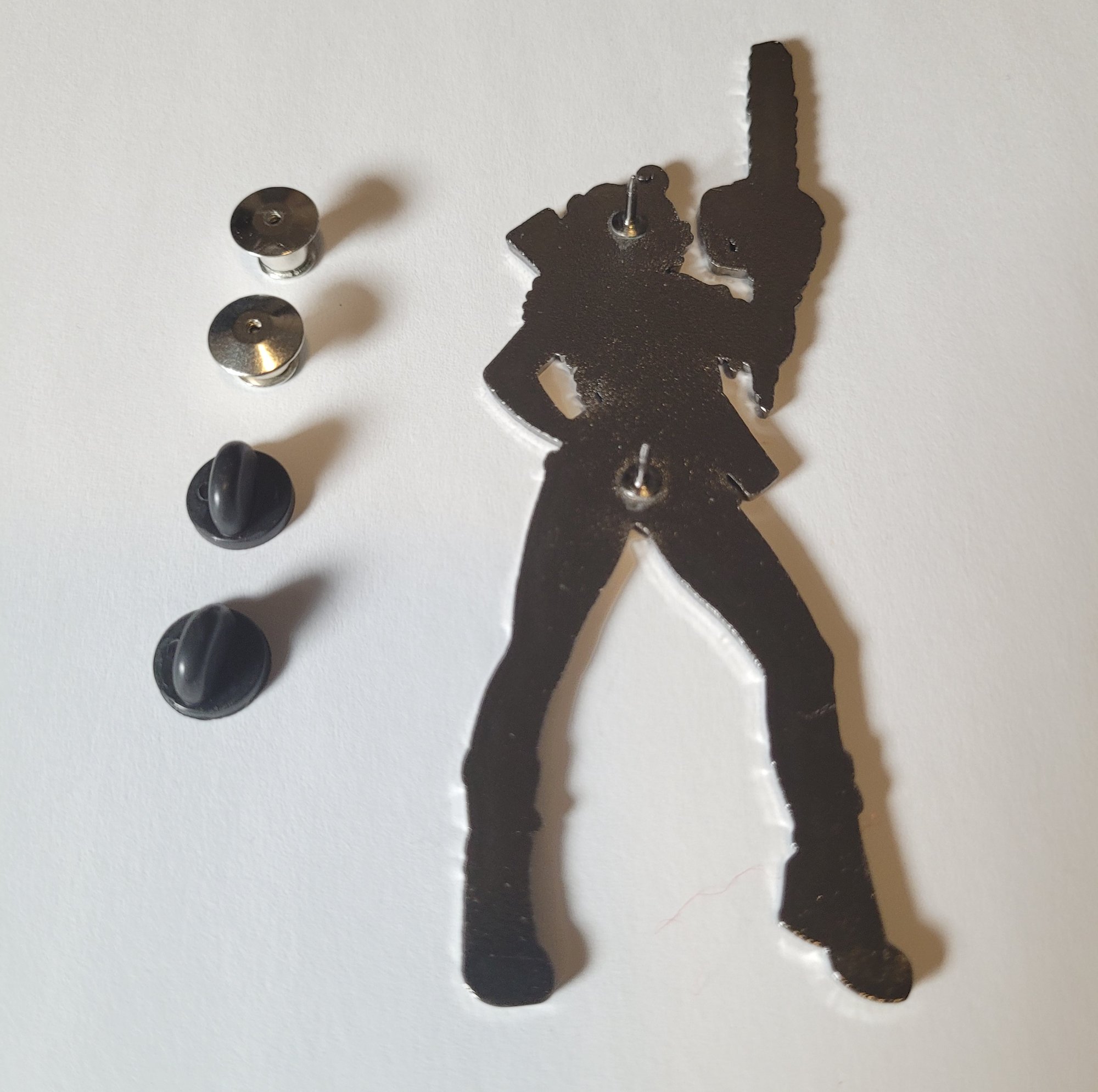 This Sexy Anime Ash Williams From The Evil Dead & Army Of Darkness JUMBO sized enamel pin has double pin locking mechanisms on the back of it to ensure that it stays on and stays straight. The measurements of this pin are depicted in the photos of this listing. Each pin will come with the original back locking mechanisms that they came with, whether it be the metal pinch style or the black silicone style backing AS WELL as - I will be including easy to attach and unlock pin lock mechanisms with each enamel pin purchase to ensure that your pin never falls off and you never lose it, no matter how hard you're head banging or how rowdy the circle pit gets! See pics of it in listing.