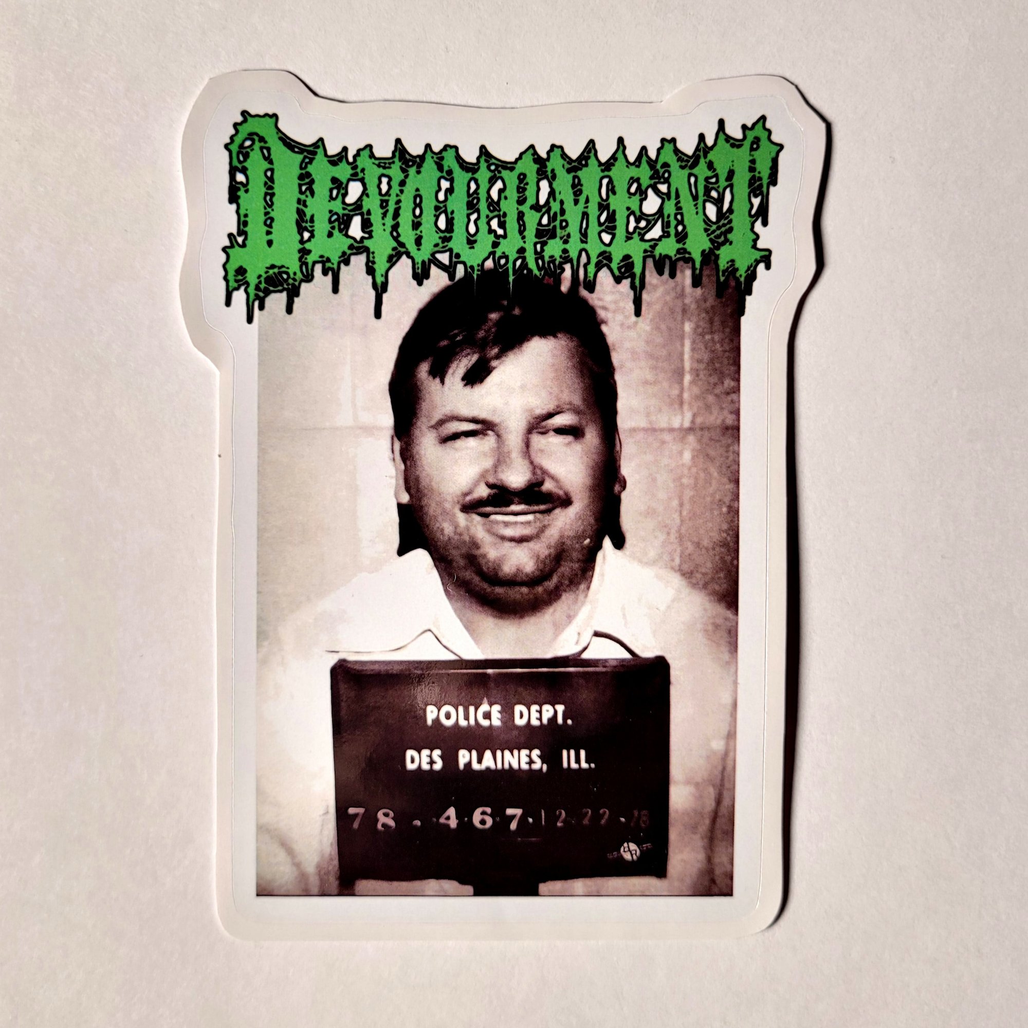 LARGE Devourment John Wayne Gacy Mugshot Glossy Finish LAMINATED Vinyl Sticker