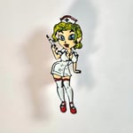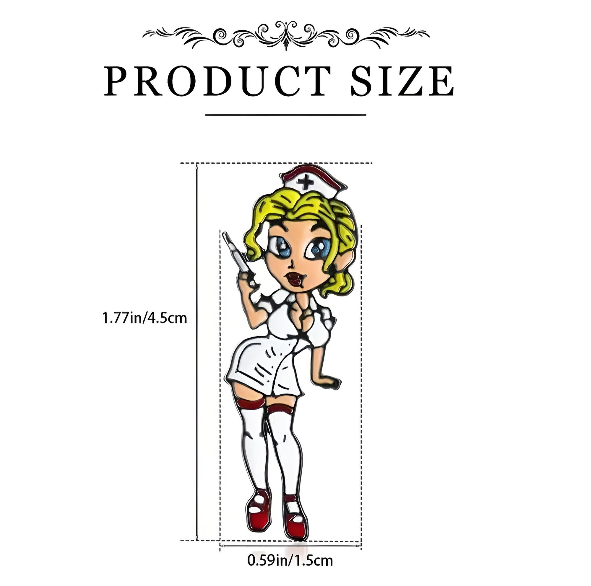 This Sexy Nurse enamel pin has a singular pin locking mechanism on the back of it. The measurements of this pin are depicted in the photos of this listing. Each pin will come with the original back locking mechanisms that they came with, whether it be the metal pinch style or the black silicone style backing AS WELL as - I will be including easy to attach and unlock pin lock mechanisms with each enamel pin purchase to ensure that your pin never falls off and you never lose it, no matter how hard you're head banging or how rowdy the circle pit gets! See pics of it in listing.
