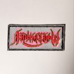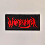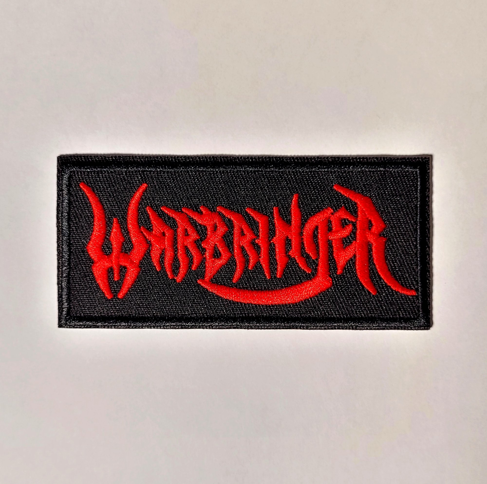 This Warbringer band logo embroidered patch has a merrowed edge and measures 10cm x 5cm which is approximately 4" x 2" inches.